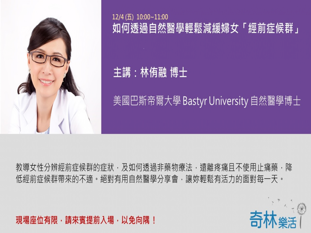 教導女性分辨經前症候群的症狀,及如何透過非藥物療法,遠離疼痛且不使用止痛藥,降低經前症候群帶來的不適。