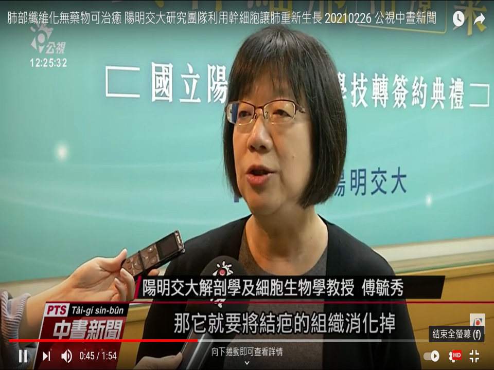 陽明交通大學解剖學及細胞生物所教授傅毓秀帶領研究團隊,開發出幹細胞療法,治療俗稱「菜瓜布肺」的肺臟纖維化,獲得奇林投資的--【富華生再生醫學生技公司】支持,將在台進行臨床試驗。
